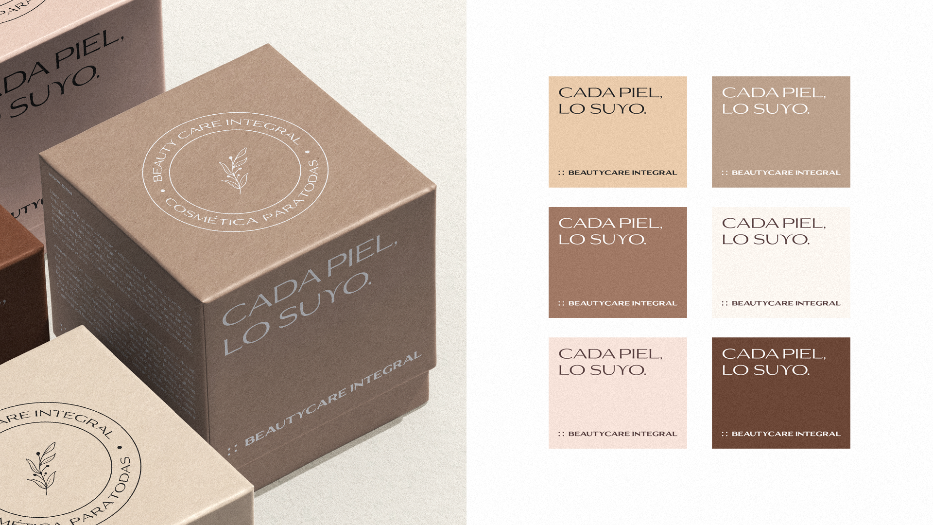BEAUTYCARE INTEGRAL is a skincare brand offering curated sets of products tailored to different skin tones. The brand identity design project required building a versatile system that could reflect inclusivity while remaining simple for the founder to implement and manage on her own.